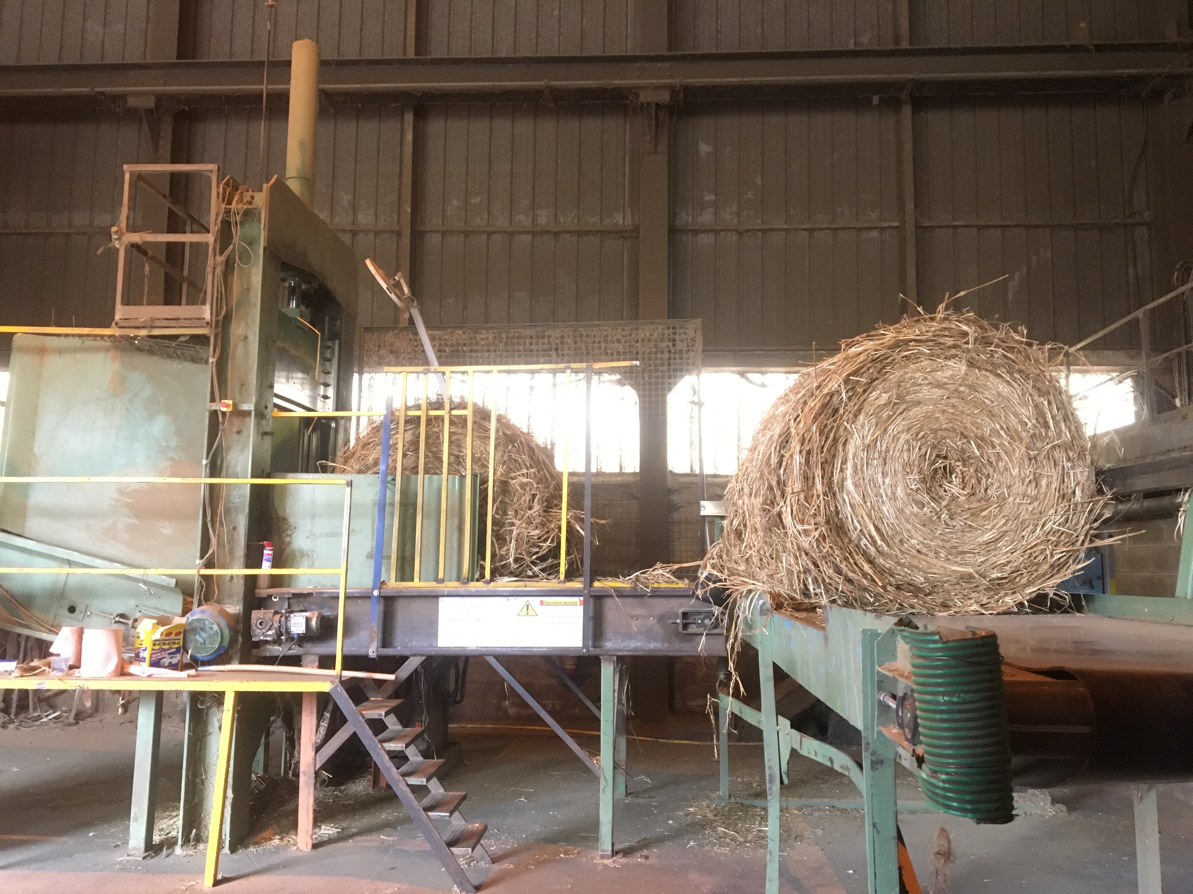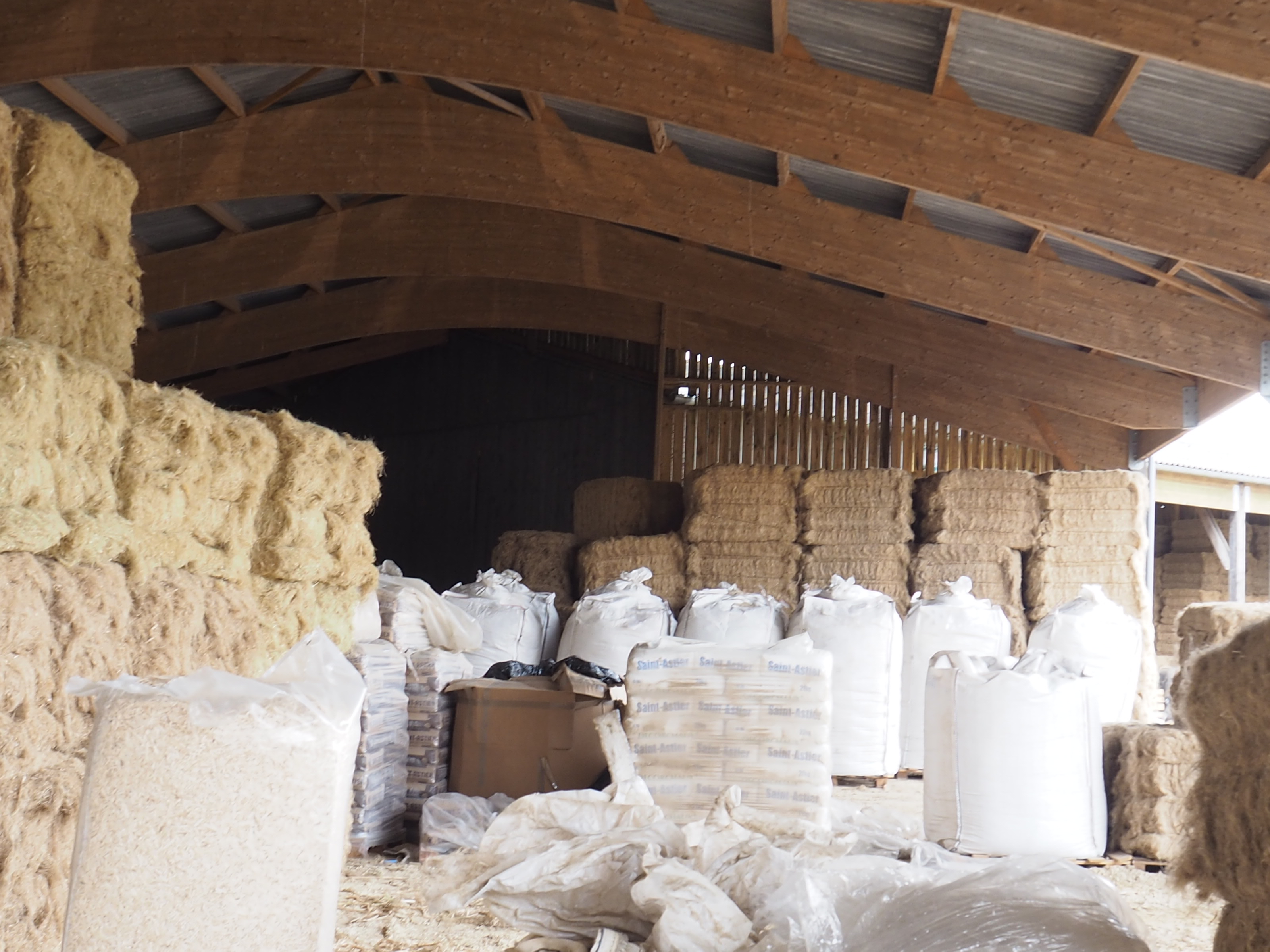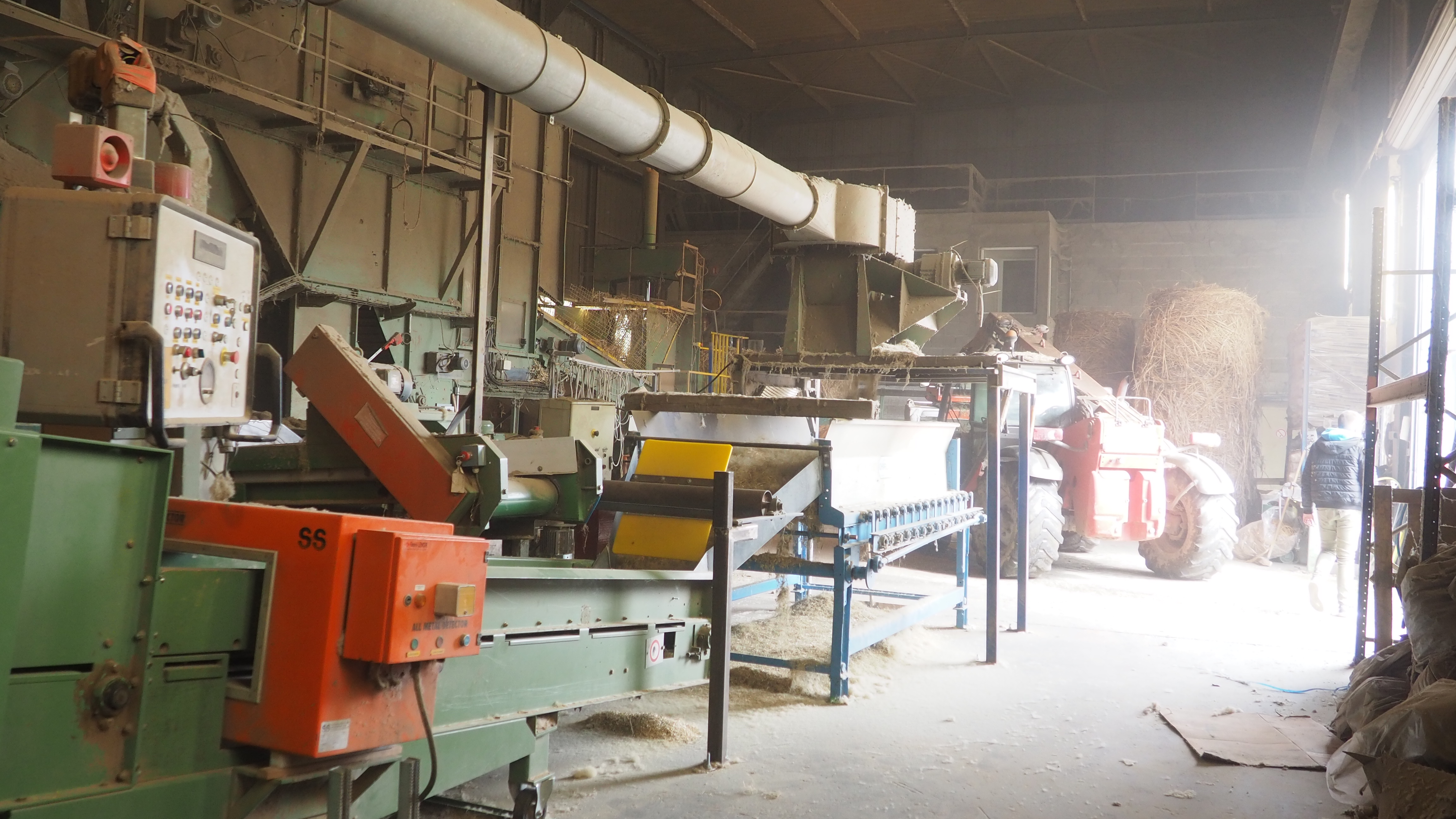 Avant de détailler les caractéristiques techniques et économiques des produits de l’entreprise, nous avons réalisé un tour de l’usine avec Guillaume qui nous a expliqué le défibrage mécanique de la paille de chanvre.